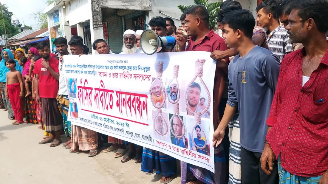 The next day, on Friday noon, the families of the victims and locals held a human chain protest at Khanpur Bazar in Daulatpur upazila in Kushtia demanding the immediate arrest of the killers.