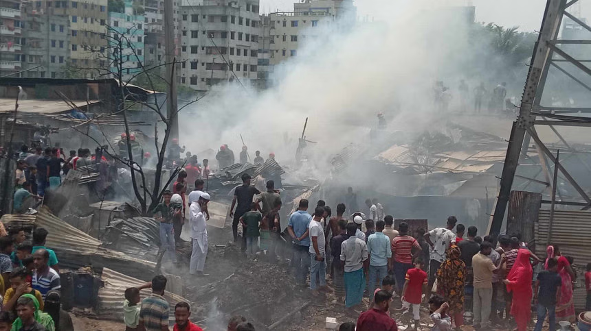A fire that broke out in a tin-shed shanty town (slum) in Jhaocharer Moar of Hazaribagh area in Dhaka was brought under control.