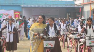 MTB foundation CEO Samia Choudhury with the students after distributing bicycle